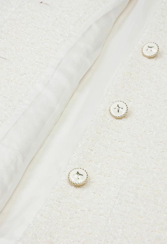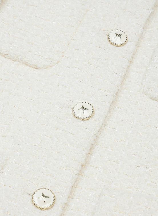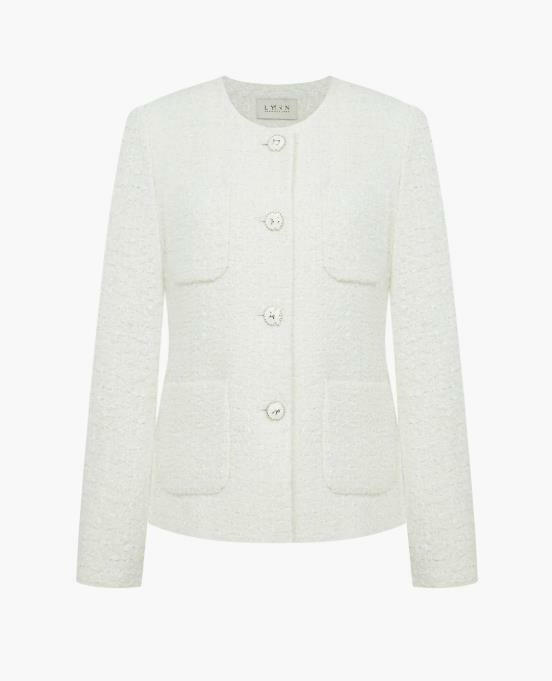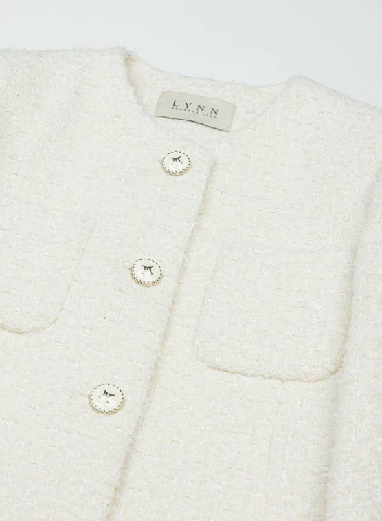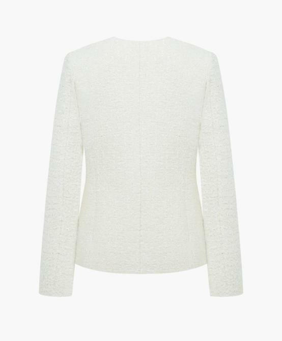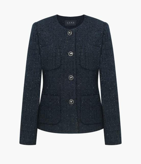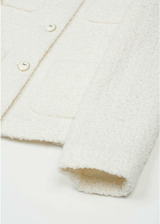 균일한 짜임의 트위드 조직이 고급스러운 표면감을 주는 트위드 자켓입니다.