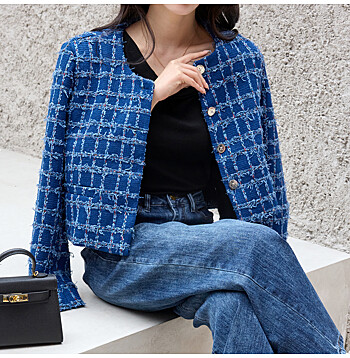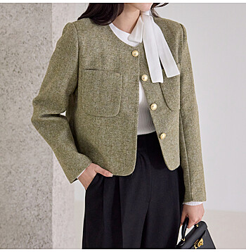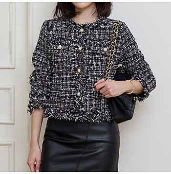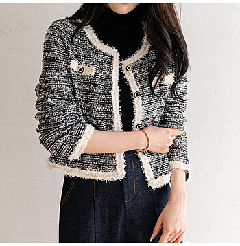 - 메탈 노카라 세미크롭 트위드 자켓_M2309JK088C)