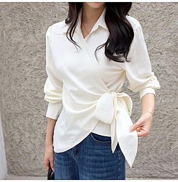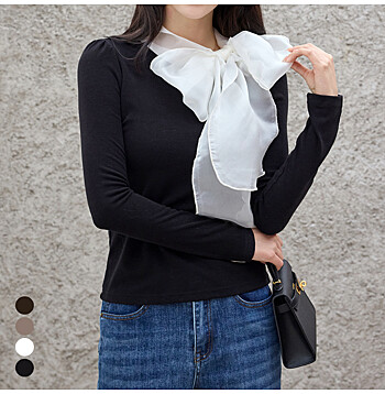 - [SET]플레어 쉬폰 뒷리본 블라우스_M2503BL015A)
