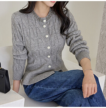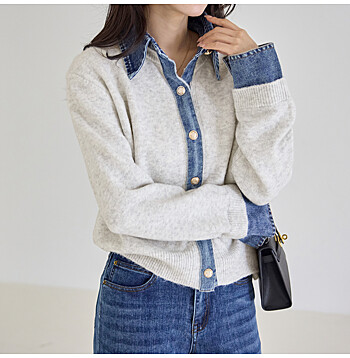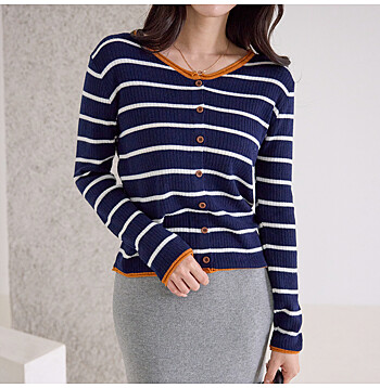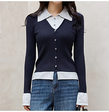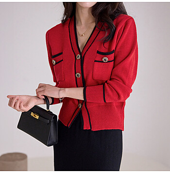 - 배색 라이닝 포켓 브이 가디건_M2510CD612C)