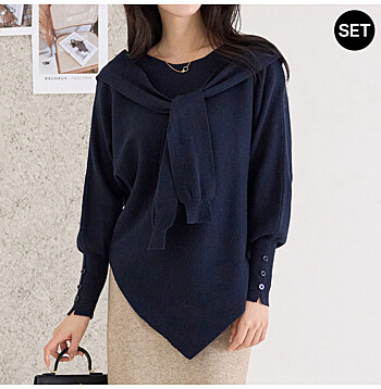 - 숄카라 겹브이넥 랩 니트_M2510KN646C)