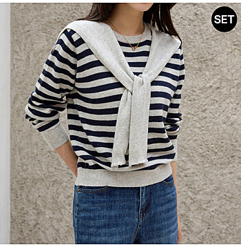 - [헤어밴드 증정]스트라이프 헤어밴드 셔츠 세트_M2504SE604B)
