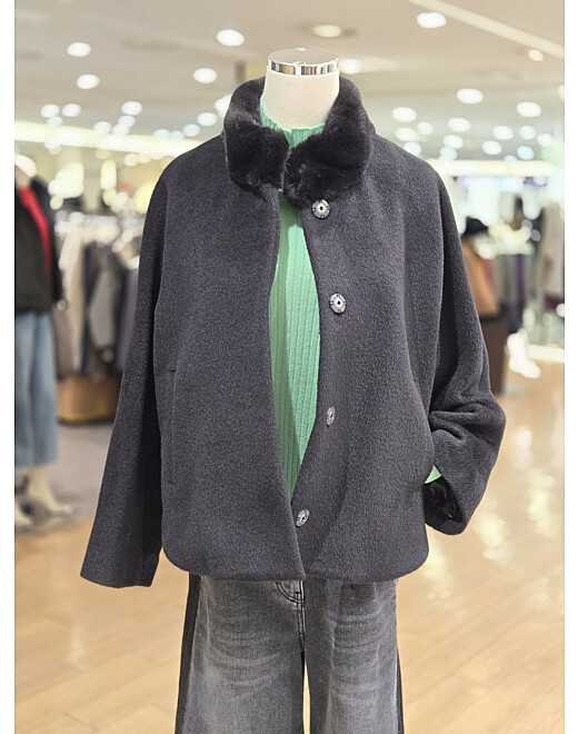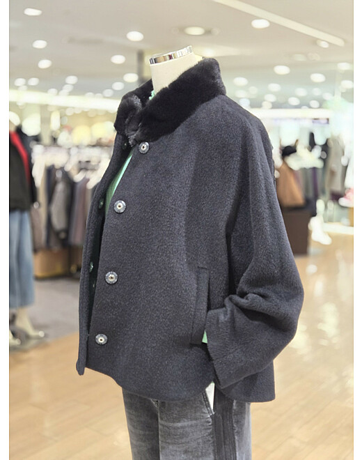 | 1. 제품 소재 (섬유의 조성 또는 혼용률을 백분율로 표시, 기능성인 경우 성적서 또는 허가서) | 겉감:알파카 60%, 울 40% / 배색:밍크 100% / 안감:폴리에스테르 100 |