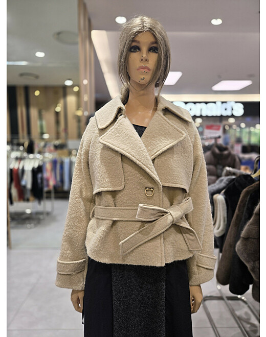 1. 제품 소재 (섬유의 조성 또는 혼용률을 백분율로 표시, 기능성인 경우 성적서 또는 허가서) | 겉감:모 76%, 알파카 12%, 나일론 8%, 앙고라 4% / 안감:폴리에스테 |