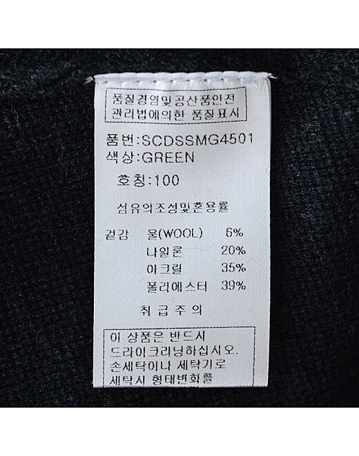 | 1. 제품 소재 (섬유의 조성 또는 혼용률을 백분율로 표시, 기능성인 경우 성적서 또는 허가서) | 모6%나일론20%아크릴35%폴리에스터39% |