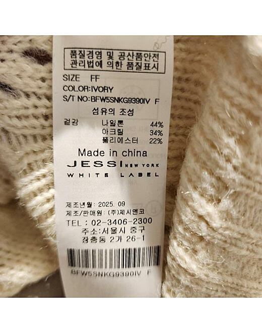 1. 제품 소재 (섬유의 조성 또는 혼용률을 백분율로 표시, 기능성인 경우 성적서 또는 허가서) 나일론44%,아크릴34%,폴리에스터22%