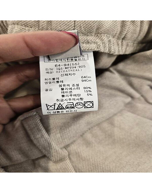 1. 제품 소재 (섬유의 조성 또는 혼용률을 백분율로 표시, 기능성인 경우 성적서 또는 허가서) 폴리에스터80%,레이온15%,폴리우레탄5%