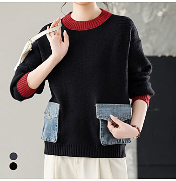 - 화세 데님포켓배색니트_HB5WKN083C)