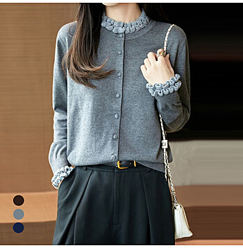 - 화세 프릴넥드롭리본버튼니트_HB5WKN064C)