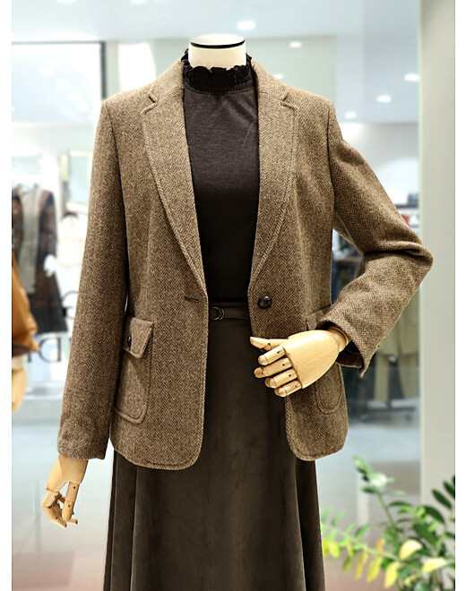 1. 제품 소재 (섬유의 조성 또는 혼용률을 백분율로 표시, 기능성인 경우 성적서 또는 허가서) 겉감:울 100% / 안감:폴리에스터 100% / 배색:모 65%, 레이온 20%,