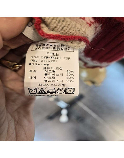 | 1. 제품 소재 (섬유의 조성 또는 혼용률을 백분율로 표시, 기능성인 경우 성적서 또는 허가서) | 아크릴80%,폴리에스터20% |