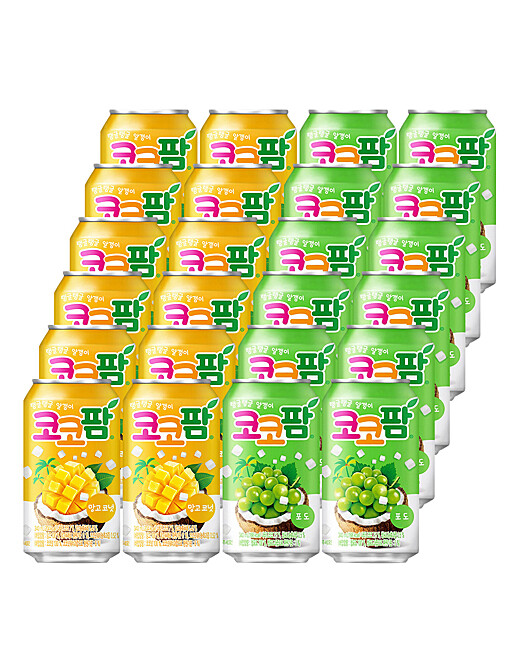 | 1. 포장단위별 용량(중량),수량,크기 | 해태 코코팜 340ml 망고 + 포도 혼합 24개 |