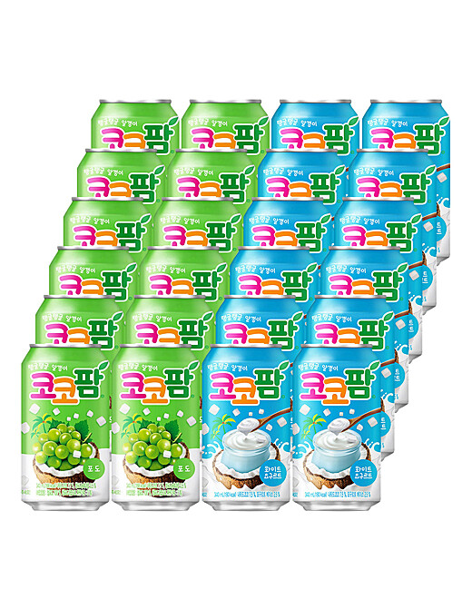 | 1. 포장단위별 용량(중량),수량,크기 | 해태 코코팜 340ml 포도 + 화이트 혼합 24개 |