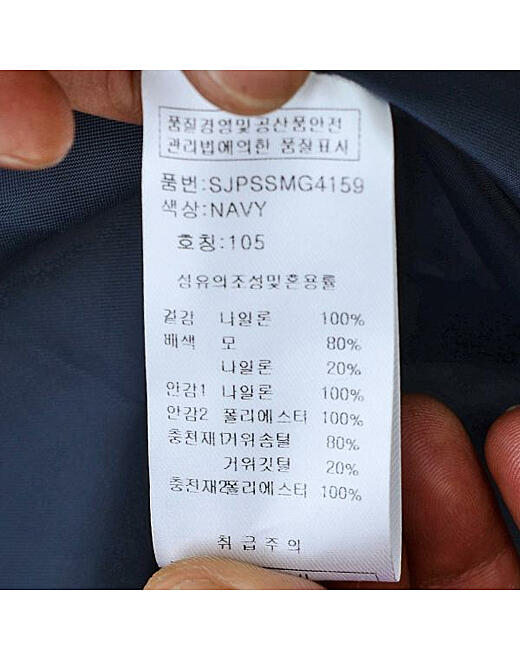 | 1. 제품 소재 (섬유의 조성 또는 혼용률을 백분율로 표시, 기능성인 경우 성적서 또는 허가서) | 거위솜털80%거위깃털20% |