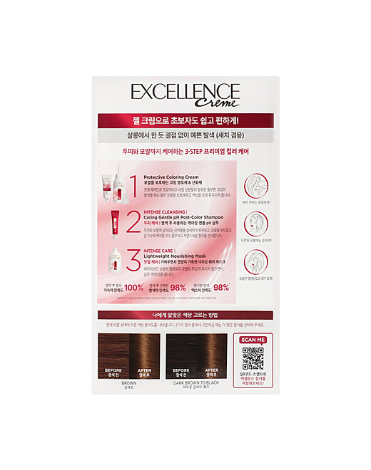 | 7. 주요성분 | [염모제] 정제수, 세테아릴알코올, 프로필렌글라이콜, 데세스-3, 라우레스-12, 암모늄하이드록사이드, 올레스-30, 헥사다이메트린클로라이드, 라우릭애씨드, 글라이콜다이스테아레이트, 폴리쿼터늄-22, 레조시놀, 에탄올아민, P- 페닐렌딩아민, 실리카다이메틸실릴레이트, 외 |
