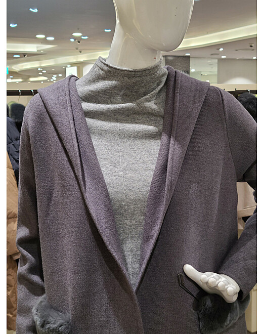 | 1. 제품 소재 (섬유의 조성 또는 혼용률을 백분율로 표시, 기능성인 경우 성적서 또는 허가서) | 겉감: 레이온 50%, 폴리에스테르 30%, 나일론 20%, 배색: 토끼털 100 |