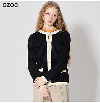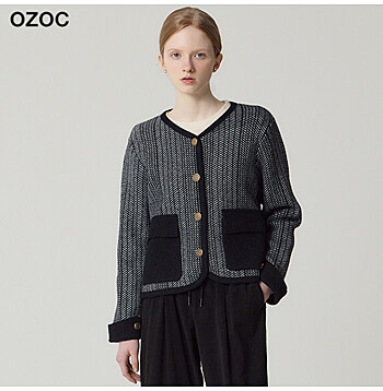- [오조크(OZOC)] 라운드넥 금장버튼 포인트 니트자켓 (택가격: 128000원))