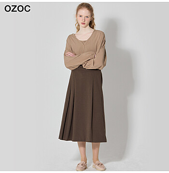 - [오조크(OZOC)]A라인 핀턱 백밴딩 스커트 (택가격: 87000원))