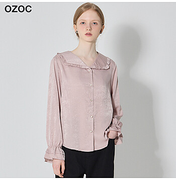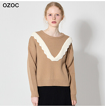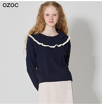 - [오조크(OZOC)] 라운드 프릴넥 니트 탑 (택가격: 99000원))