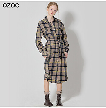 - [오조크(OZOC)] 체크 셔츠 롱 원피스 (택가격: 119000원))
