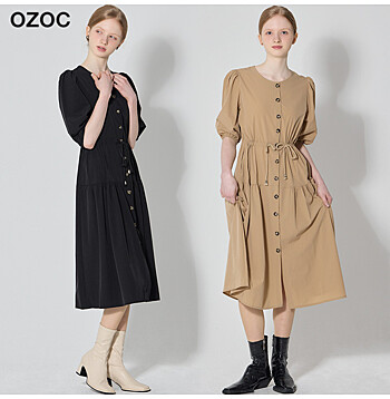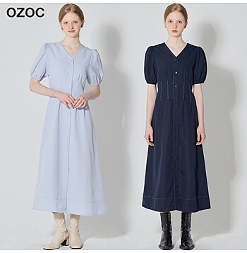 - [오조크(OZOC)] 퍼프 소매 브이넥 롱 원피스 (택가격: 113000원))