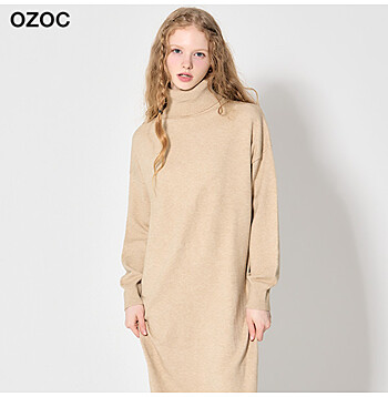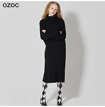- [오조크(OZOC)] 터틀넥 트임 니트 원피스 (택가격: 124000원))