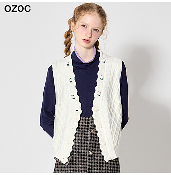 - [오조크(OZOC)] 플로럴 자수 오픈 니트 베스트 (택가격: 74000원))
