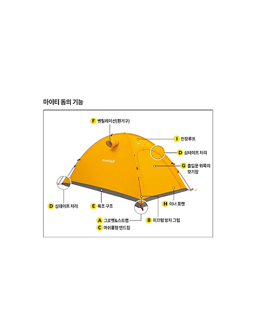 1. 제품소재 | 본체 브리즈 드라이 테크 플러스 3레이어 [PTFE라미네이트 가공][겉감 15데니어 바리스틱 나일론 립스탑 (내수압 20,000mm)] 플러스 30데니어 바리스틱 나일론 립스탑 (내수압 1,500mm,우레탄 코팅) 폴 알루미늄 합금(폴 지름)8.5mm |