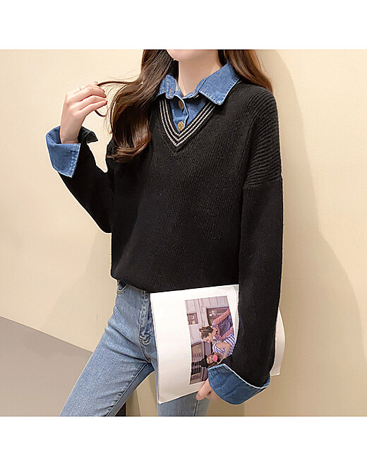 | 1. 제품 소재 (섬유의 조성 또는 혼용률을 백분율로 표시, 기능성인 경우 성적서 또는 허가서) | 니트:아크릴70% 폴리에스테르30% 셔츠:면100% |