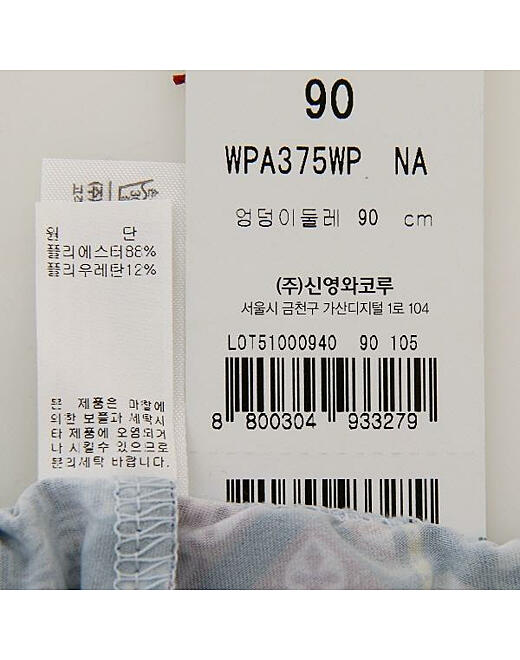 | 1. 제품 소재 (섬유의 조성 또는 혼용률을 백분율로 표시, 기능성인 경우 성적서 또는 허가서) | 폴리에스터88%,폴리우레탄12% |