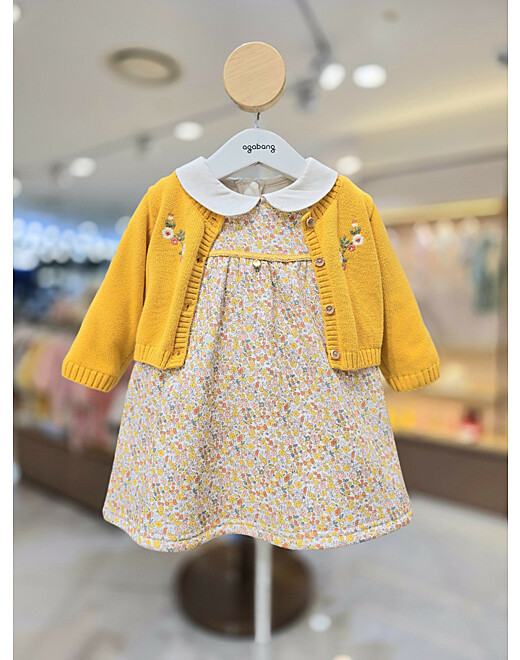 | 1. 제품 소재 (섬유의 조성 또는 혼용률을 백분율로 표시, 기능성인 경우 성적서 또는 허가서) | 원피스:폴리에스터86%,레이온11%,폴리우레탄3%외 가디건:면100%외 |