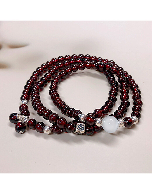 | 6. 취급시 주의사항 | 가넷은 단단하지만 깨질 수 있어요. 운동·작업 등 손목에 무리가 가는 상황에서는 착용을 피하세요. 화장품, 향수, 땀 등은 광택을 손상시킬 수 있어요. 손 씻기, 샤워, 로션/향수 사용 후 완전히 마른 뒤 착용하세요. 은(실버) 파츠는 공기 중에 산화되어 변색될 수 있어요. 사용 후에는 부드러운 천으로 닦아 밀봉하여 보관하세요. 물과 고온의 환경은 우레탄줄을 약하게 만드니 피해주세요. |