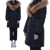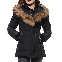 | 1. 제품 소재 (섬유의 조성 또는 혼용률을 백분율로 표시, 기능성인 경우 성적서 또는 허가서) | 겉감 100% 폴리에스테르, 충전재 90% 덕다운, 10% 페더, 라쿤퍼 |
