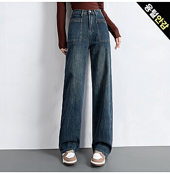 - [55~77][벨트SET]앞포켓 워싱 포인트 벨트셋 데님 팬츠_O2408DP047C_D)