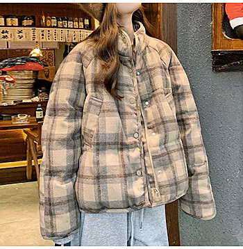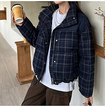 - 오버핏 체크 빈티지 집업 패딩점퍼_O2511PD004D)