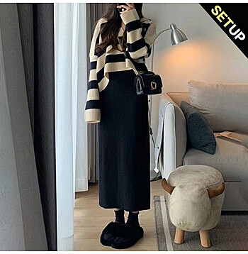 - 베이직 반목 니트 체크 원피스 2종세트_O2210SE607D)
