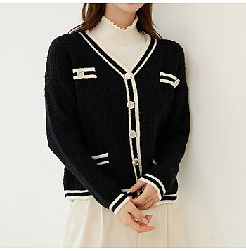 - 배색 단추 니트 가디건_PK2511CD065C)
