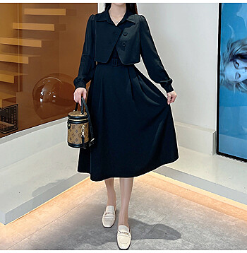 - 클라셰 블랙시크플레어원피스+벨트SET_B5S0103)