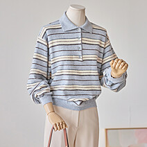 배색 스트라이프 울 카라 니트_T2601KN018A