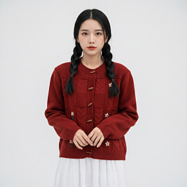 여성 겨울 플라워 자수 포인트 가디건 니트 귀여운 캐주얼 카디건 여학생 떡볶이 단추