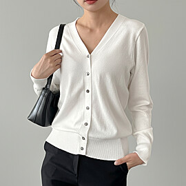 여성 브이넥 단추 포인트 가디건 기본핏 긴팔 간절기 데일리 니트