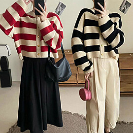 [버커루] 남성) 스트라이프 카라 니트 풀오버 (B244KT360P1)