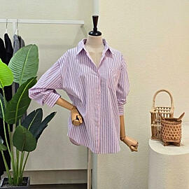 FS6A3BL30497_컬러 스트라이프 카라넥 셔츠