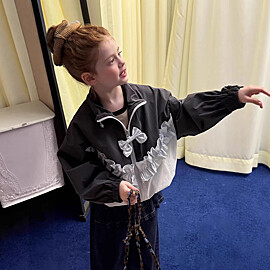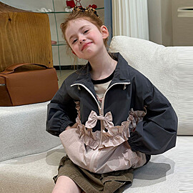 여아 배색 절개 후드 점퍼 23F0102_BK