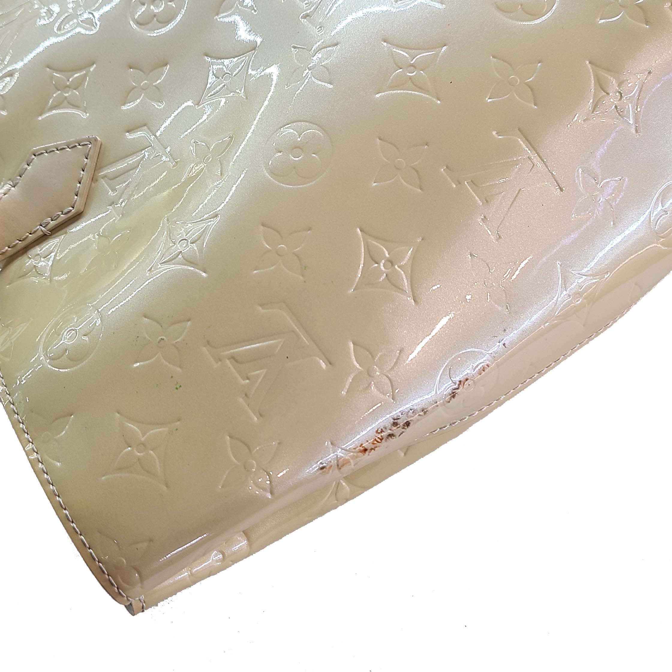 상태 : 모서리와 상단 마모로 인한 소재 벗겨짐있고 바디 끈적임 및 잔얼룩과 금장 포함 스크래치, 내부 때탐과 잔이염 있습니다. 2012년 국내백화점 구매 제품입니다.