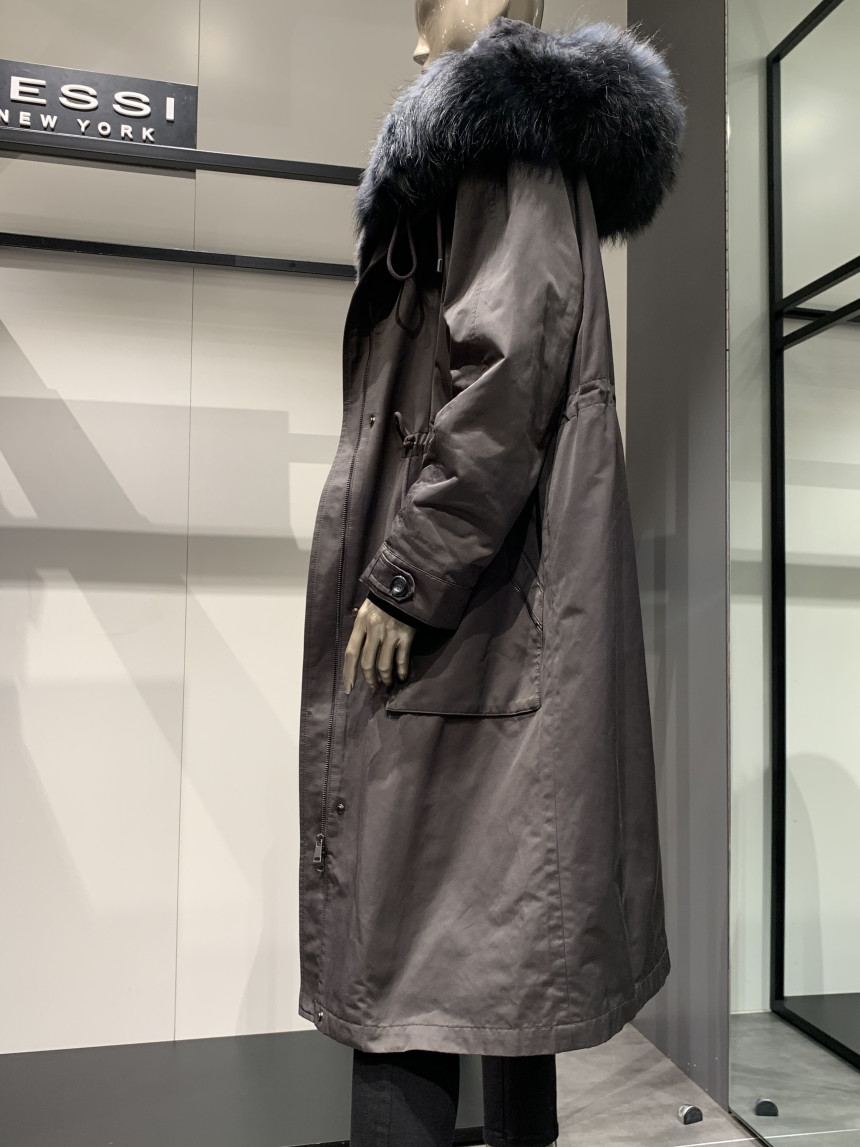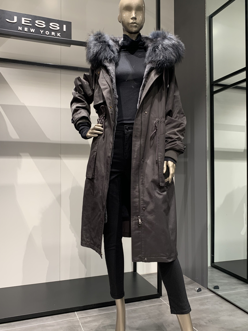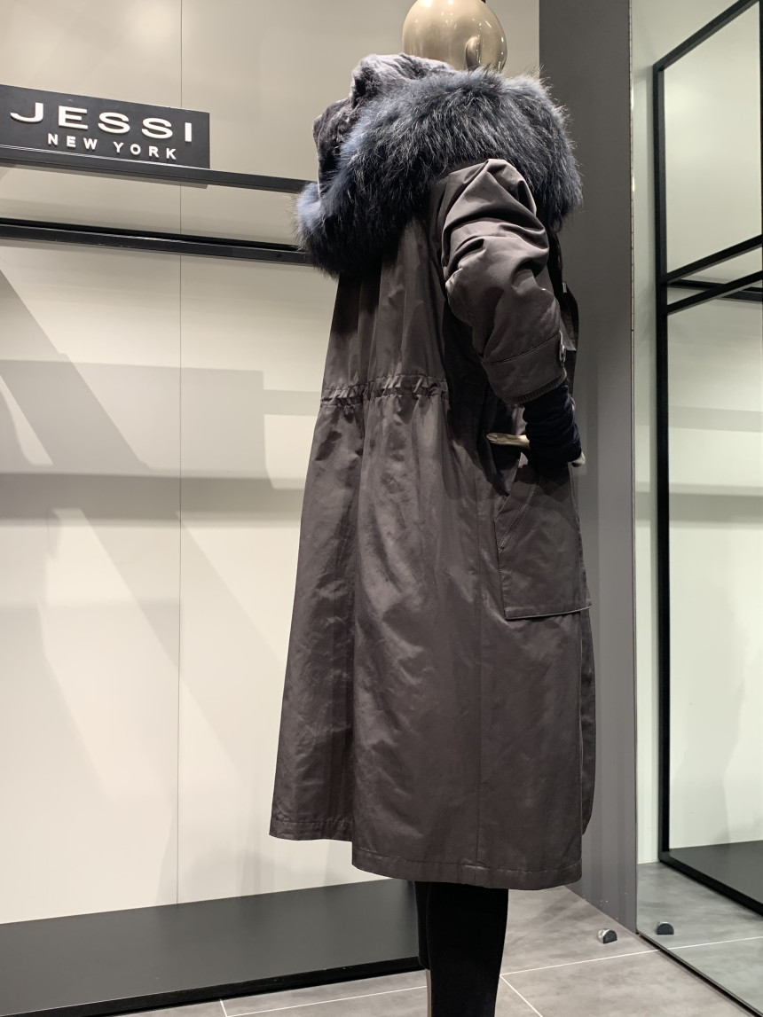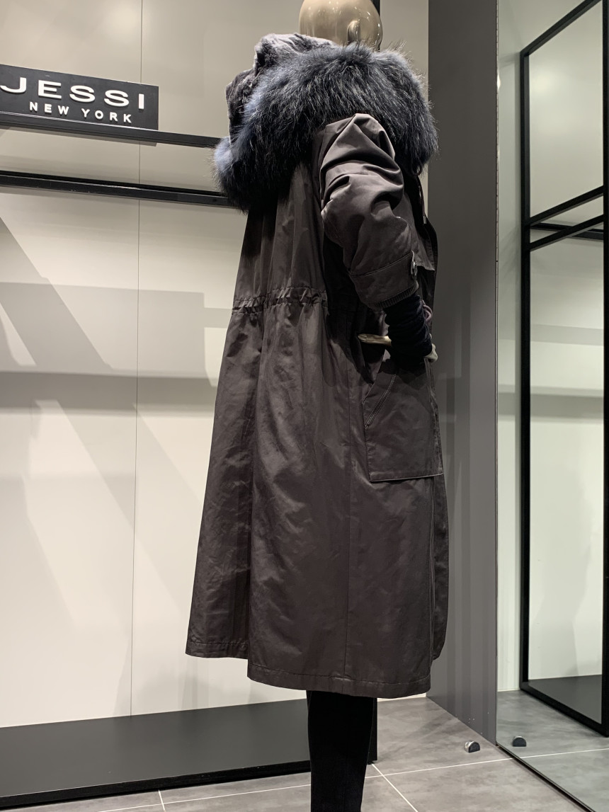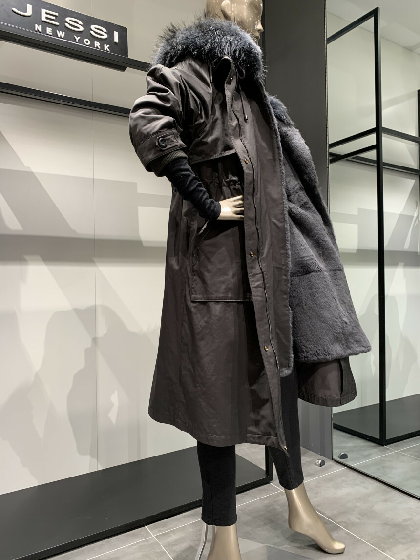 보온성 좋은 토끼털 야상 롱 점퍼입니다.