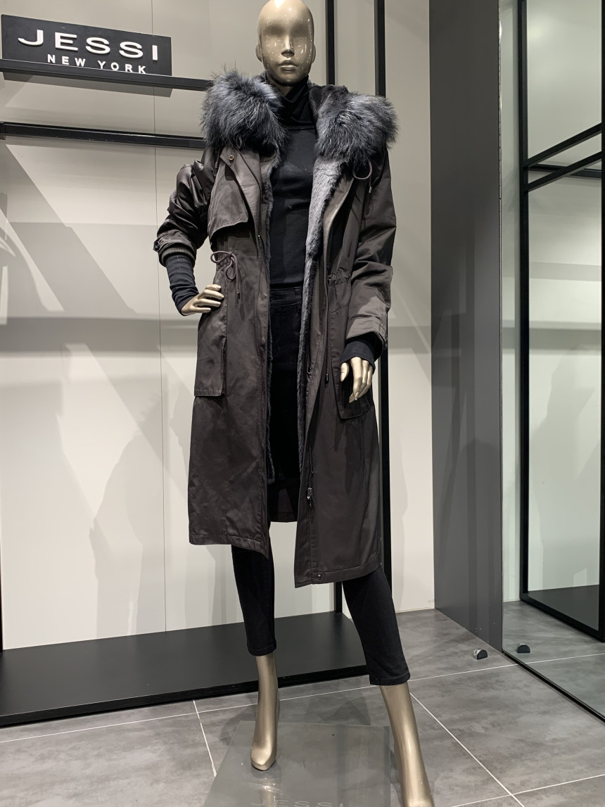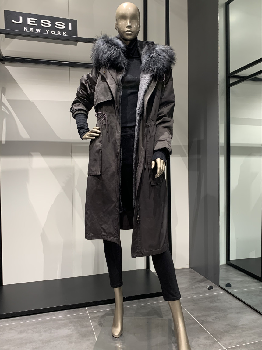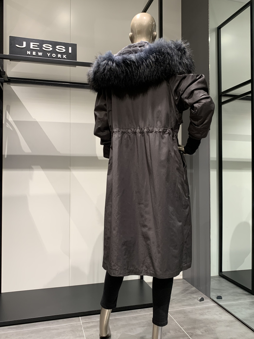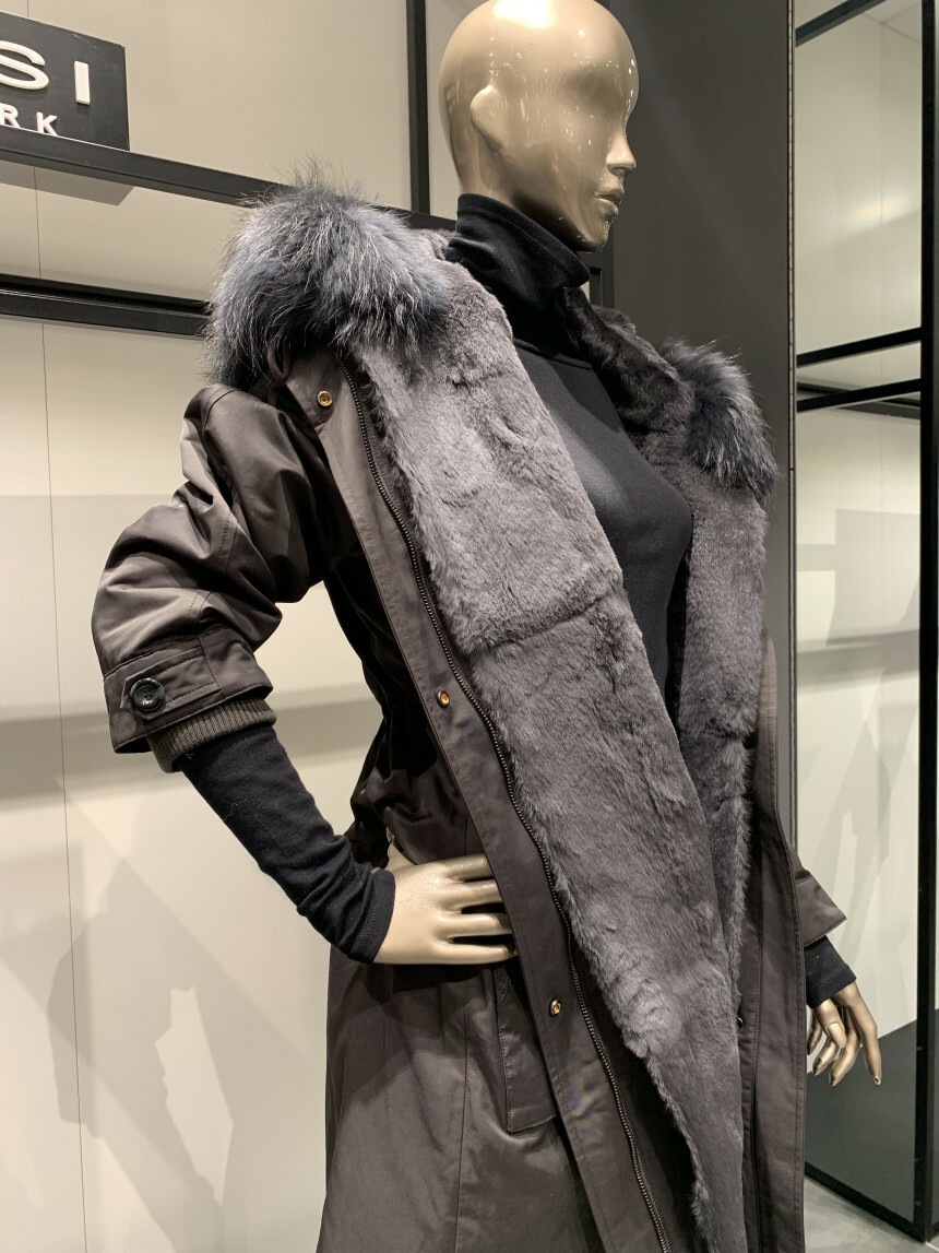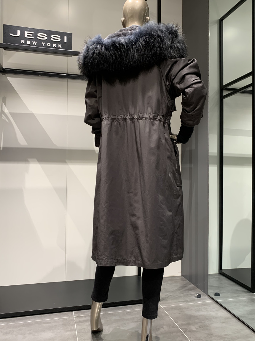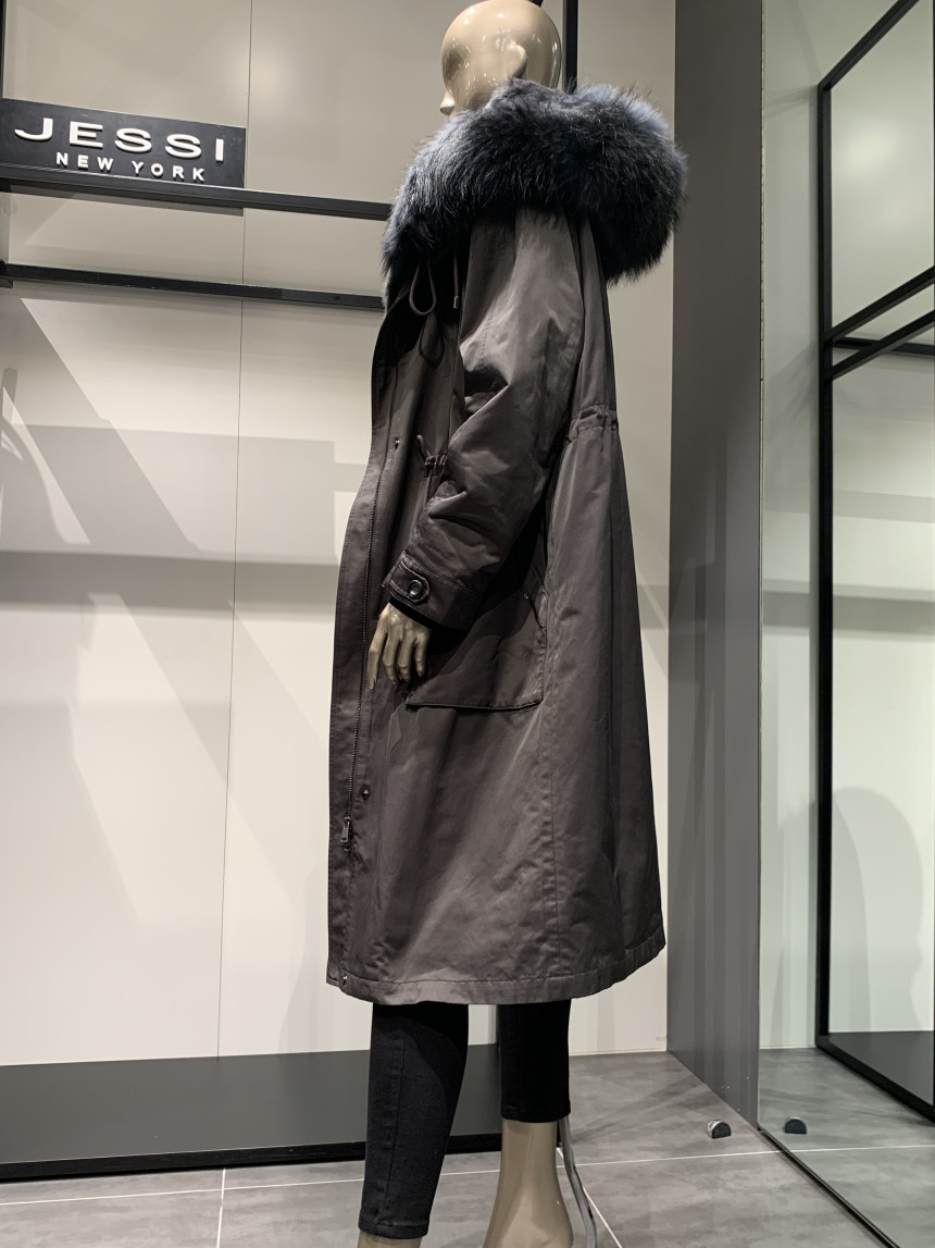 보온성 좋은 토끼털 야상 롱 점퍼입니다.