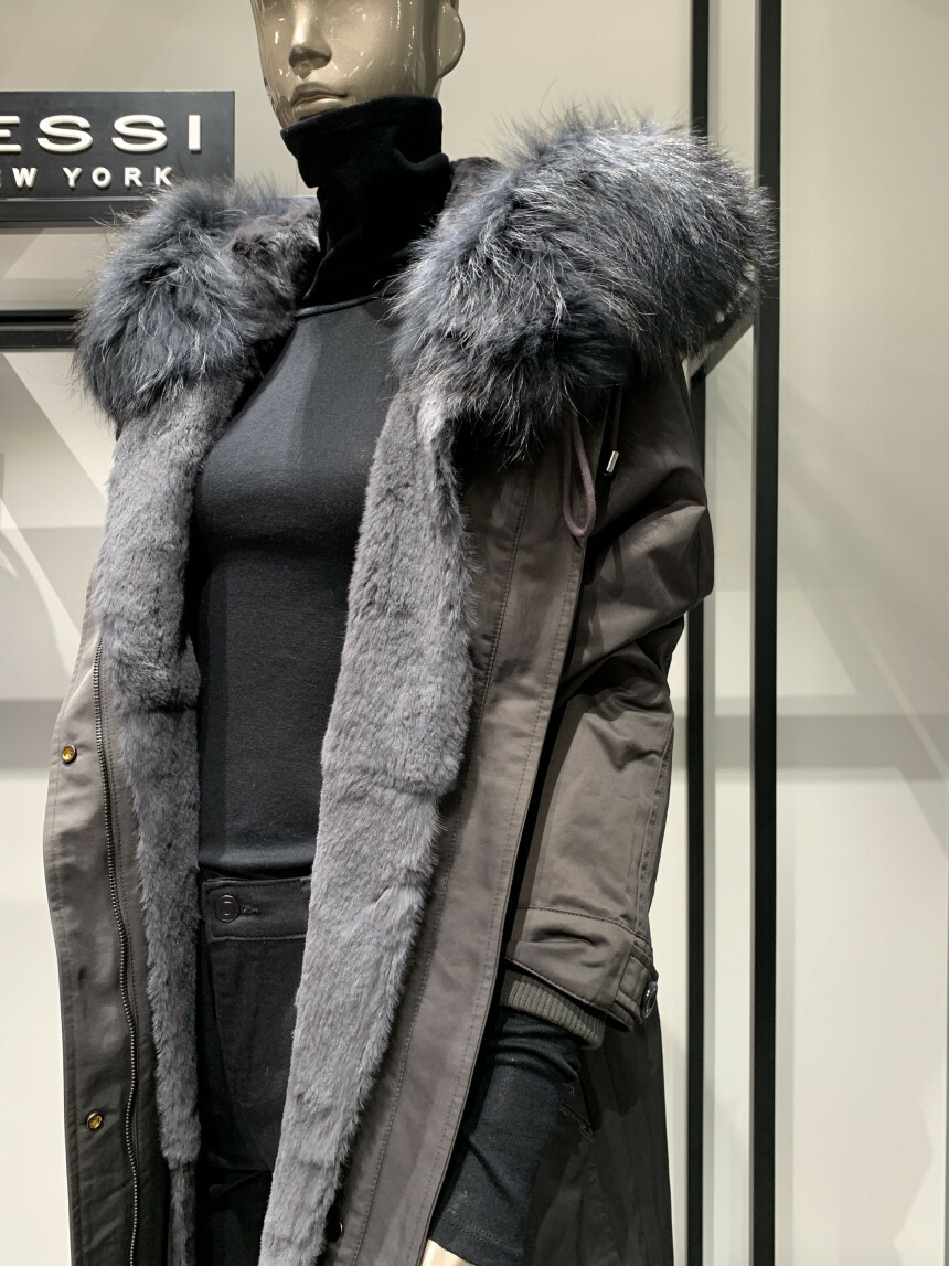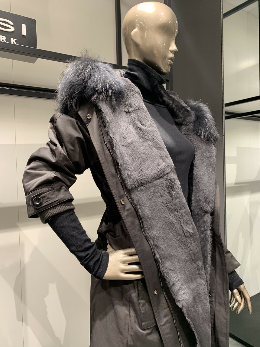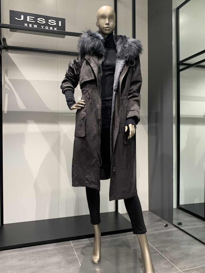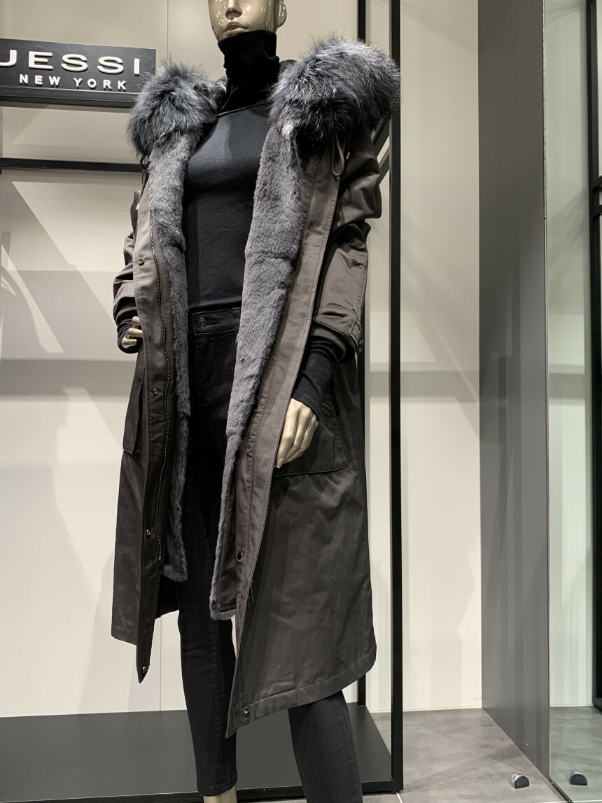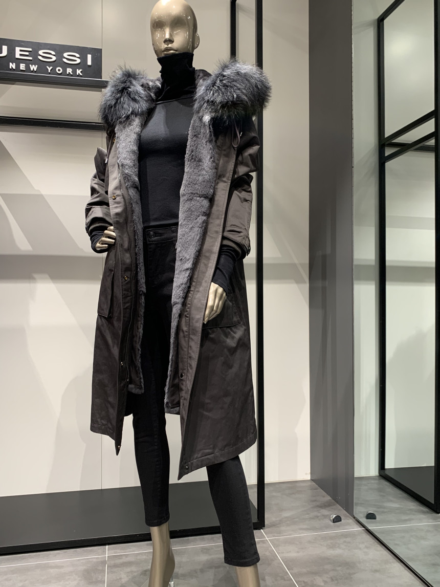 보온성 좋은 토끼털 야상 롱 점퍼입니다.