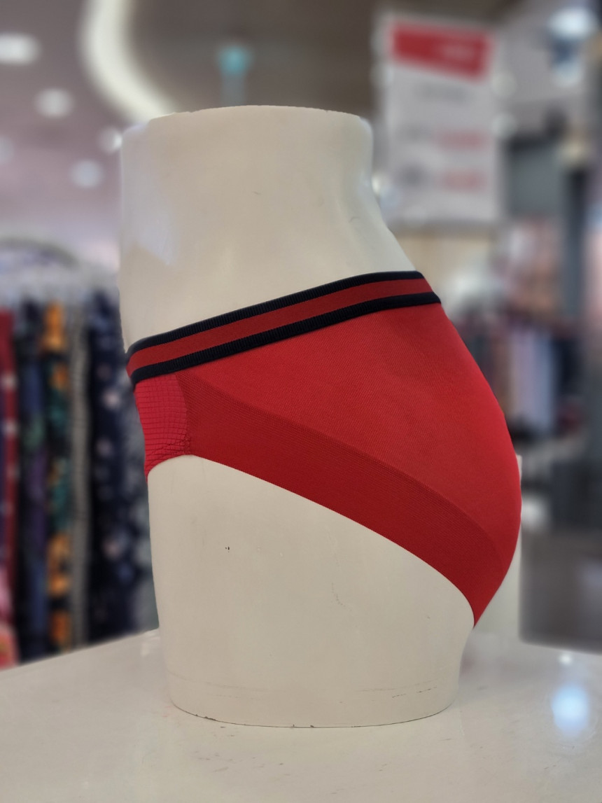 레드 컬러의 웜 매쉬 라인핏 여성 햄팬티입니다.