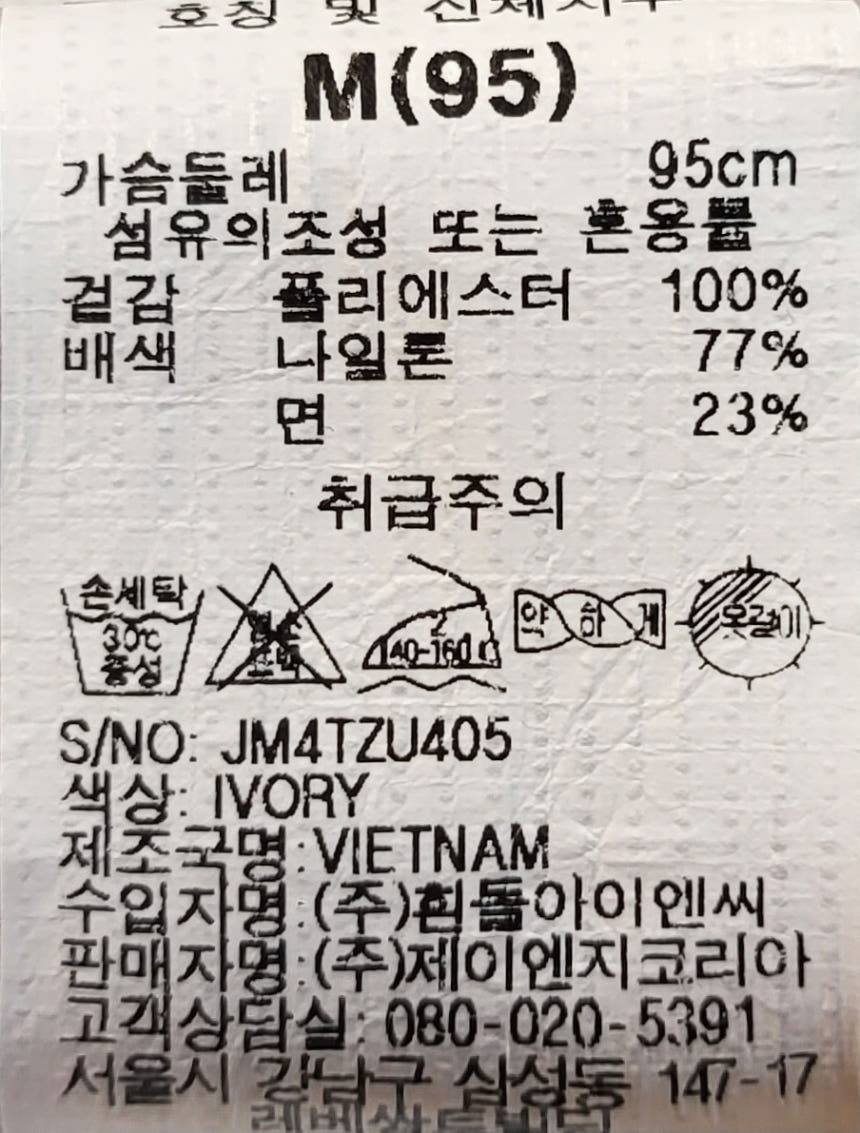 플리스 집업 자켓 JM4TZU405Color아이보리블랙SizeS (90) M (95) L (100)XL(105)